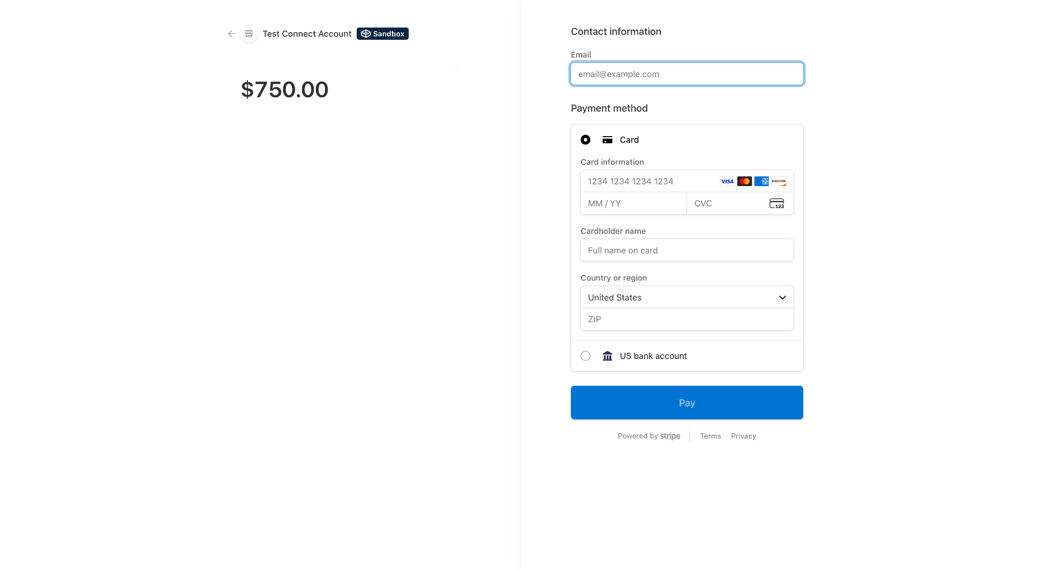 - Stripe Payment: Enter your email and card information, and when done, click Pay to process your payment.
