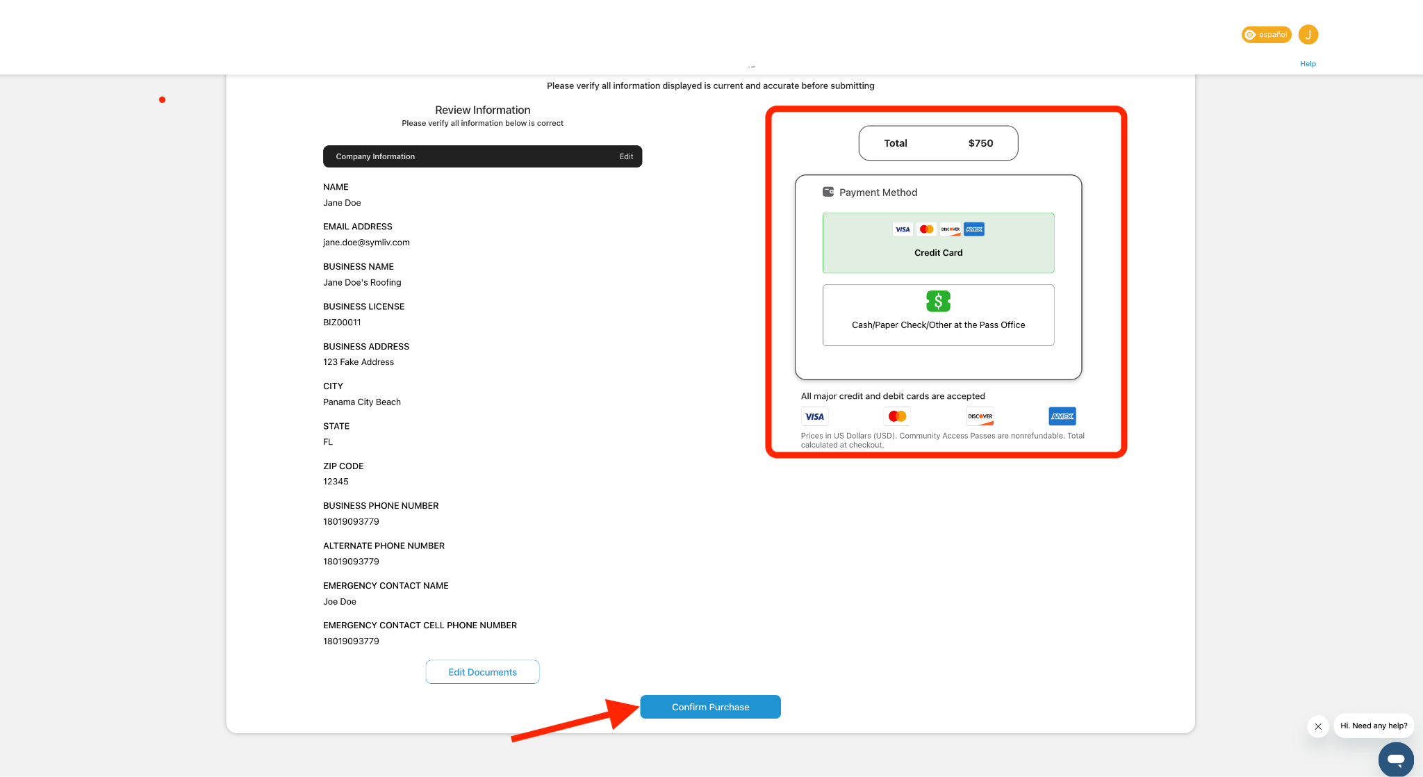 - For card transactions, select the card payment option, then click Confirm Purchase.